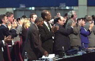 Well done, South Africa! Delegates clapping after Mbeki declared the Summit closed (Photo: United Nations Johannesburg Summit)