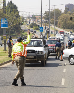Metro police staff a road block in