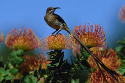 A Cape sugarbird on a pincushion protea,