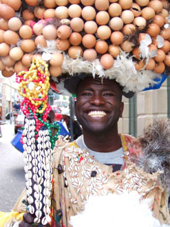 A trip with friends to the Grahamstown National Arts Festival was excellent muti for my recent bout of national blues. The first character we bumped into at the entrance to the craft market was Gregory da Silva, the Egg Man from Benin. He was wearing skins and bangles and feathers and beads, and upon his head was a giant headdress made out of hundreds of eggs and a pair of horns. “Welcome to South Africa!” he roared, “You are very welcomed!”