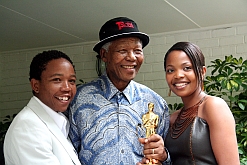 Nelson Mandela, Terry Pheto, and Oscar.