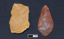 Ancient inhabitants of the time used the technique of flaking, or hitting one piece of rock with another to chip off sharp flakes, to make spearheads or meat-cutting implements. The smaller of the two pieces so produced is the flake, while the larger one is the core. The core may be used again to produce more flakes until it is completely reduced.