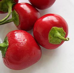 Peppadew is the brand name of a range of pickles and sauces made from a particular variety of sweet-tasting peppers (Capsicum baccatum) known as “piquanté”. The products are processed and bottled by Peppadew International using a secret recipe.