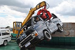 Several taxis were lined up, waiting to be scrapped as the minister spoke.