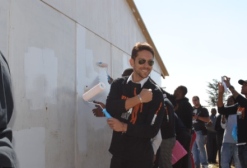 Singer Danny K, rapper and presenter ProVerb, model and presenter Bonang Matheba and fashion designer Gert Johan Coetzee painted the walls of two container classrooms at Tlhatlogang Junior Secondary School in White City Jabavu, Soweto. The school was selected by the Nelson Mandela Centre of Memory as the launch venue.
