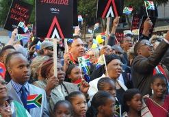 Hundreds of South Africans gathered on Nelson Mandela Square to sing and record the happy birthday song for the former president.