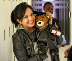 One of the furry young teddy travellers, who’ll be spreading the word in as many destinations as possible, with an admirer.