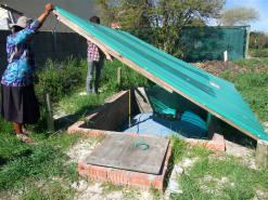 UCT partnered with the NGO Engineers Without Borders (EWB) and African Green Energy, a private company, to install a rubber bladder biodigester at the Siyazama Community Garden in the community of Khayelitsha near Cape Town, in 2011.