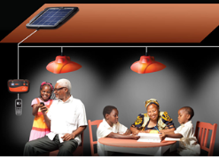 Solar lamps work anywhere the sun shines. The d.light solar system has a lifespan of seven to 10 years. It consists of a four-watt rooftop solar panel; a control box that attaches to the wall of a home or business; three bright, adjustable lights; a mobile phone charging station; and a base station that manages and displays the user’s credit.