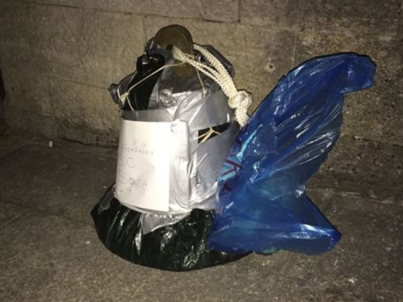 The bell of the SS Mendi is left for BBC reporter Steve Humphrey on 15 June 2017. (Image: BBC)