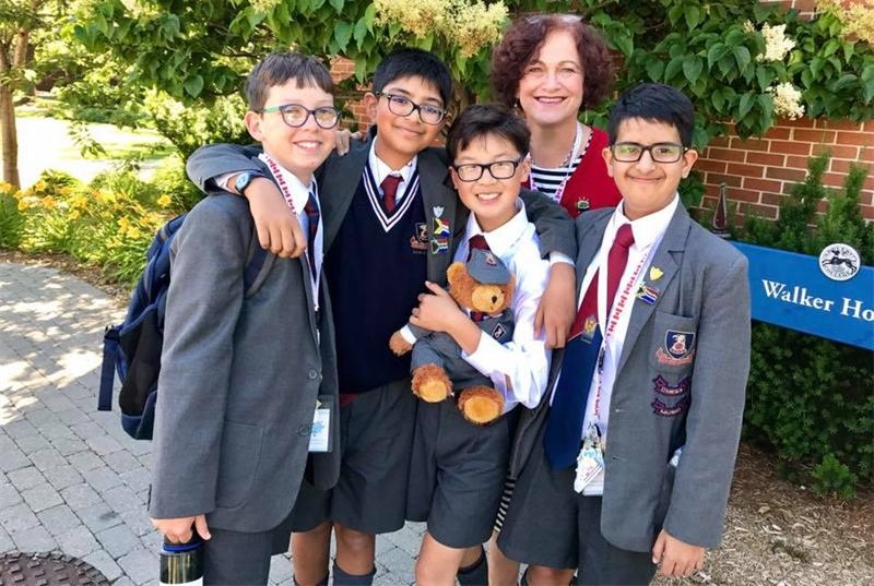 Khelan Desai, Hongjae Noh, Sahaj Mooji and Joshua Bruwer, students at St John’s Preparatory School in Johannesburg, celebrate their win at the World Literature Competition held in Toronto, Canada on 3 July 2017. With them is the team’s coach, school librarian Nicky Sulter. (St John’s Preparatory School)