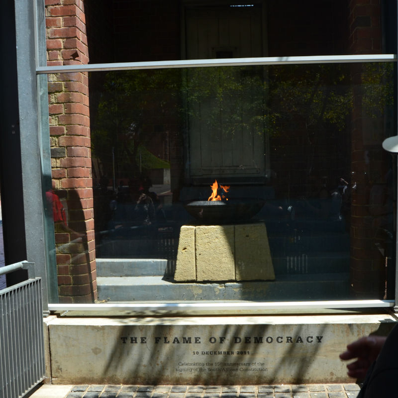 The Flame of Democracy burning outside of the Constitutional Court at Constitution Hill. (Image: Mathiba Molefe)