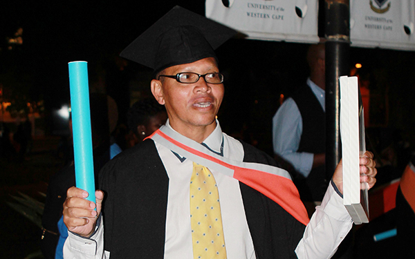 He did that for four years, through rain and cold, heat and sun. But his hard slog has paid off: Van der Byl graduated this week with his Bachelor of Education degree. Now 44, he was at a loss for words for a while, only able to say that the ceremony was unbelievable.