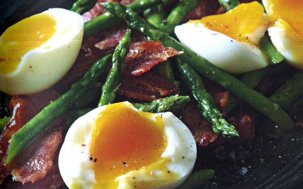 Eggs, bacon and asparagus. One of the filling, tasty, protein- and fat-rich – and guilt-free – recipes in sports scientist Tim Noakes’s new recipe book, The Real Meal Revolution.
