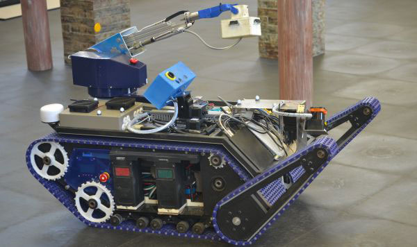 The state-of-the-art mining robot developed by the Council for Scientific and Industrial Research is able to assess mines after blasting, to ensure they are safe for mineworkers to enter. (Image: Shamin Chibba)