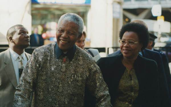 Nelson Mandela and his wife, Graça Machel, visit the London School of Economics in 2000. (Image: Wikipedia)