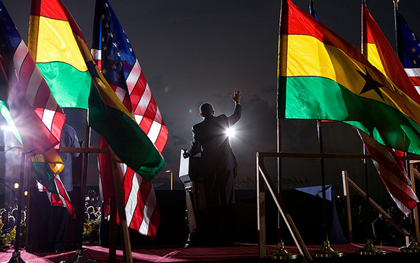 US President Barack Obama waves from the podium at a ceremony to mark the end of his visit to the West African nation of Ghana in 2009. Obama’s trip to Ethiopia and Kenya in late July will be his second official visit to African countries in eight years of presidency. (Image: White House)