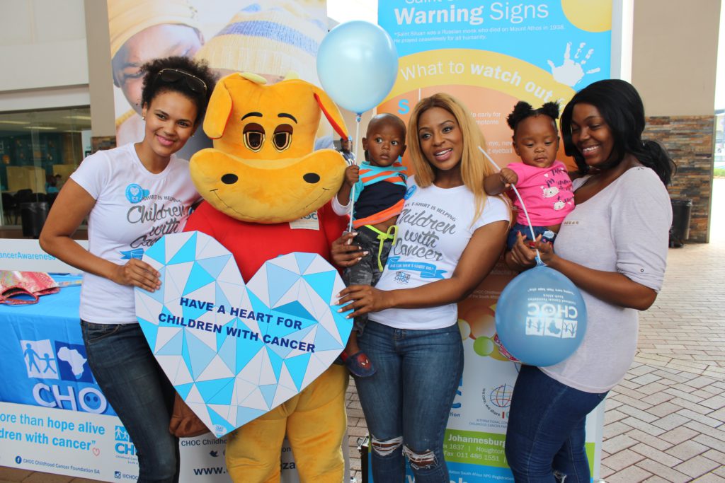 The Childhood Cancer Foundation South Africa (Choc) and its celebrity ambassadors, Phumeza Mdabe and Jessica Nkosi, visited Jabulani Mall in Soweto and Wanderers taxi rank in Johannesburg to build awareness of childhood cancer.