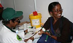 Octovia Kebareng Maditse taking an HIV test at the World Aids Day event in Pretoria on 1 December