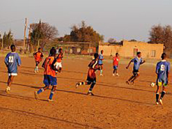 Young footballers training on a dusty field near Mafikeng in the North West province