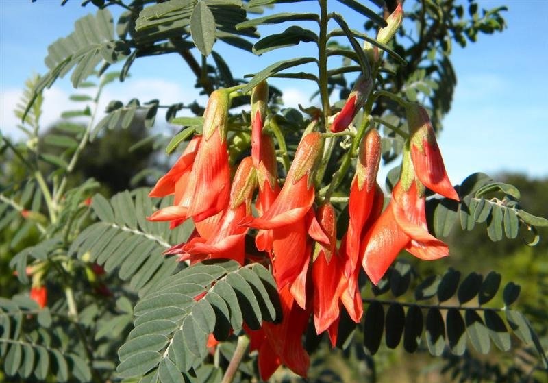 Sutherlandia frutescens, with its bright red flowers and silvery leaves, is viewed as a miracle plant in the treatment of a range of ailments. (Image: Wikipedia)