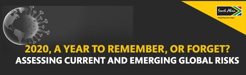 2020, A YEAR TO REMEMBER, OR FORGET? ASSESSING CURRENT AND EMERGING GLOBAL RISKS Johannesburg, Monday, 30 November 2020 – Brand South Africa along with its stakeholders will be hosting a webinar titled “2020, A year to remember, or forget? Assessing current and emerging global risks” on the 2nd December 2020 just two weeks after the […... 2020, A YEAR TO REMEMBER, OR FORGET? ASSESSING CURRENT AND EMERGING GLOBAL RISKS