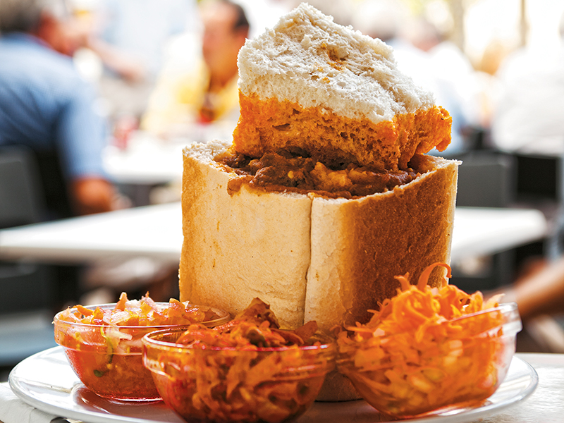 South African food celebrates the country’s rich cultural heritage, as well as taking advantage of the natural bounty of seafood, meat, game and plants. All this food has got to be washed down with something, and our wine has been earning rave reviews internationally for 300 years. A cultural melting pot